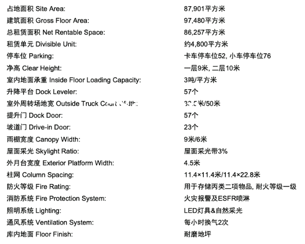 防火等级Fire Rating: 用于存储丙类二项物品,耐火等级一级